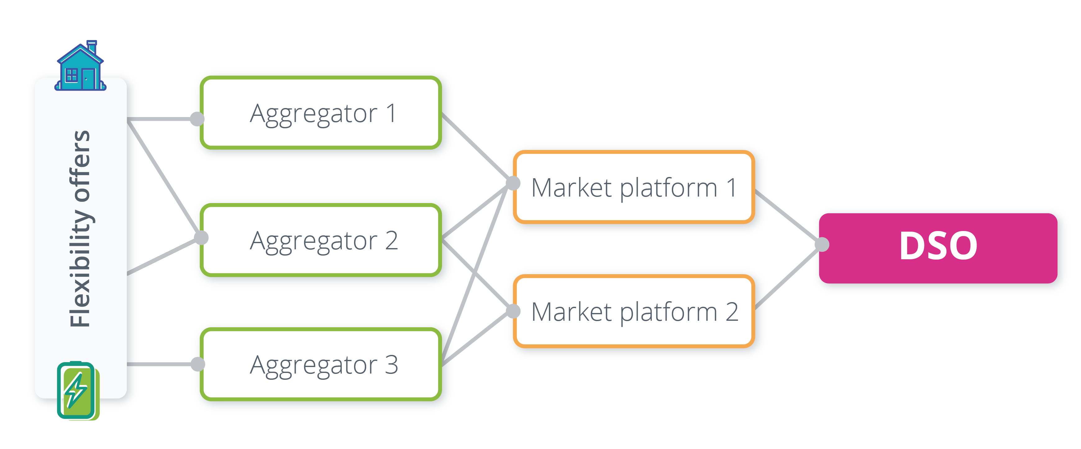 This solution made our role in the project evolve from a market platform to a provider of a tool for DSOs. This reflects in the following way on our usual diagram: