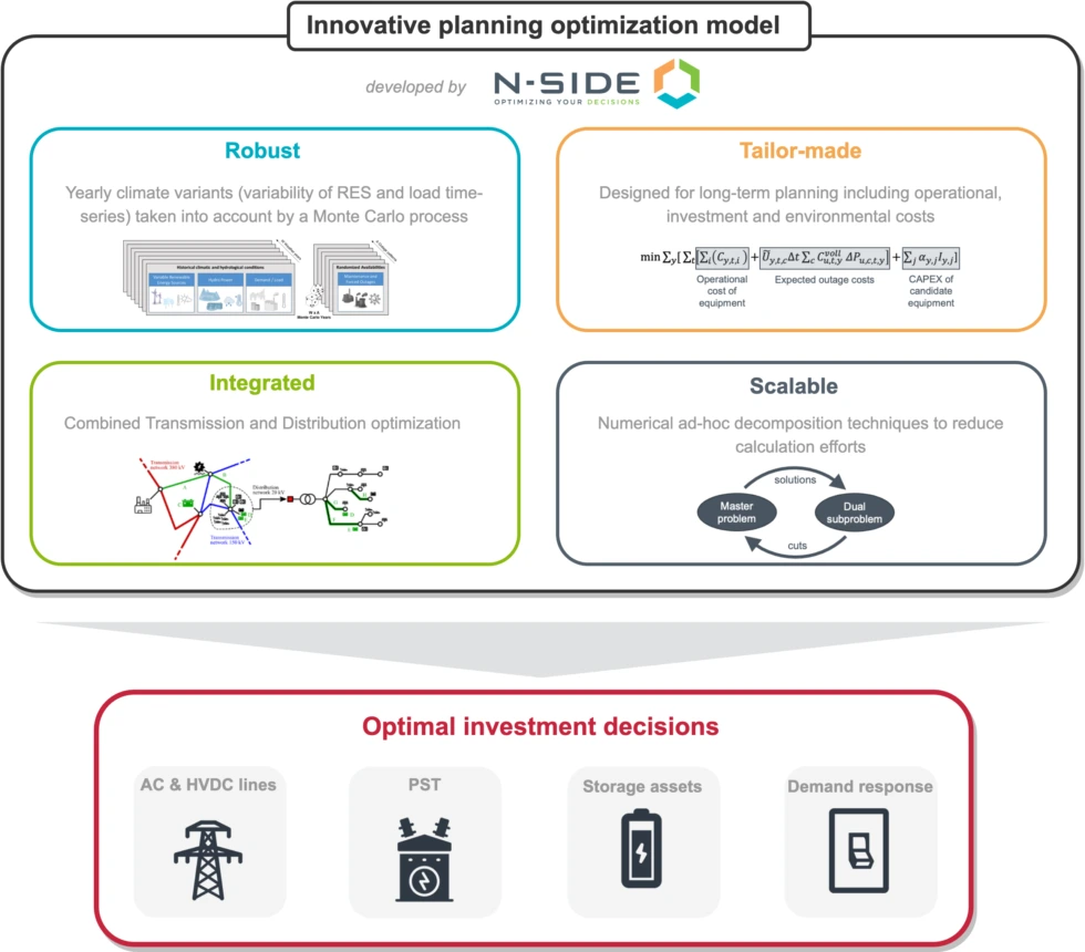 Aligned with the intentions of the Clean Energy for all Europeans regulatory package from the European Commission, the new planning tool will go beyond the state-of-the-art in planning strategy for TSOs and DSOs. Together with the consortium partners, N-SIDE has contributed to the formulation and design behind this powerful and innovative but complex tool, which main features or characteristics are highlighted in the paper The Innovative FlexPlan Grid-Planning Methodology: How Storage and Flexible Resources Could Help in De-Bottlenecking the European System.